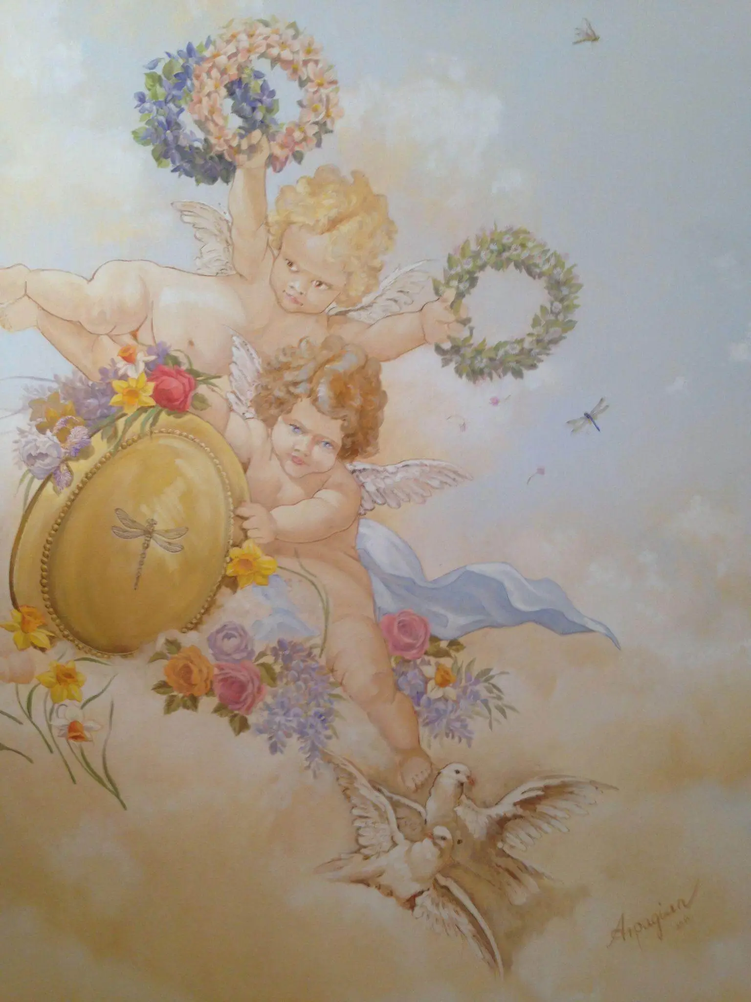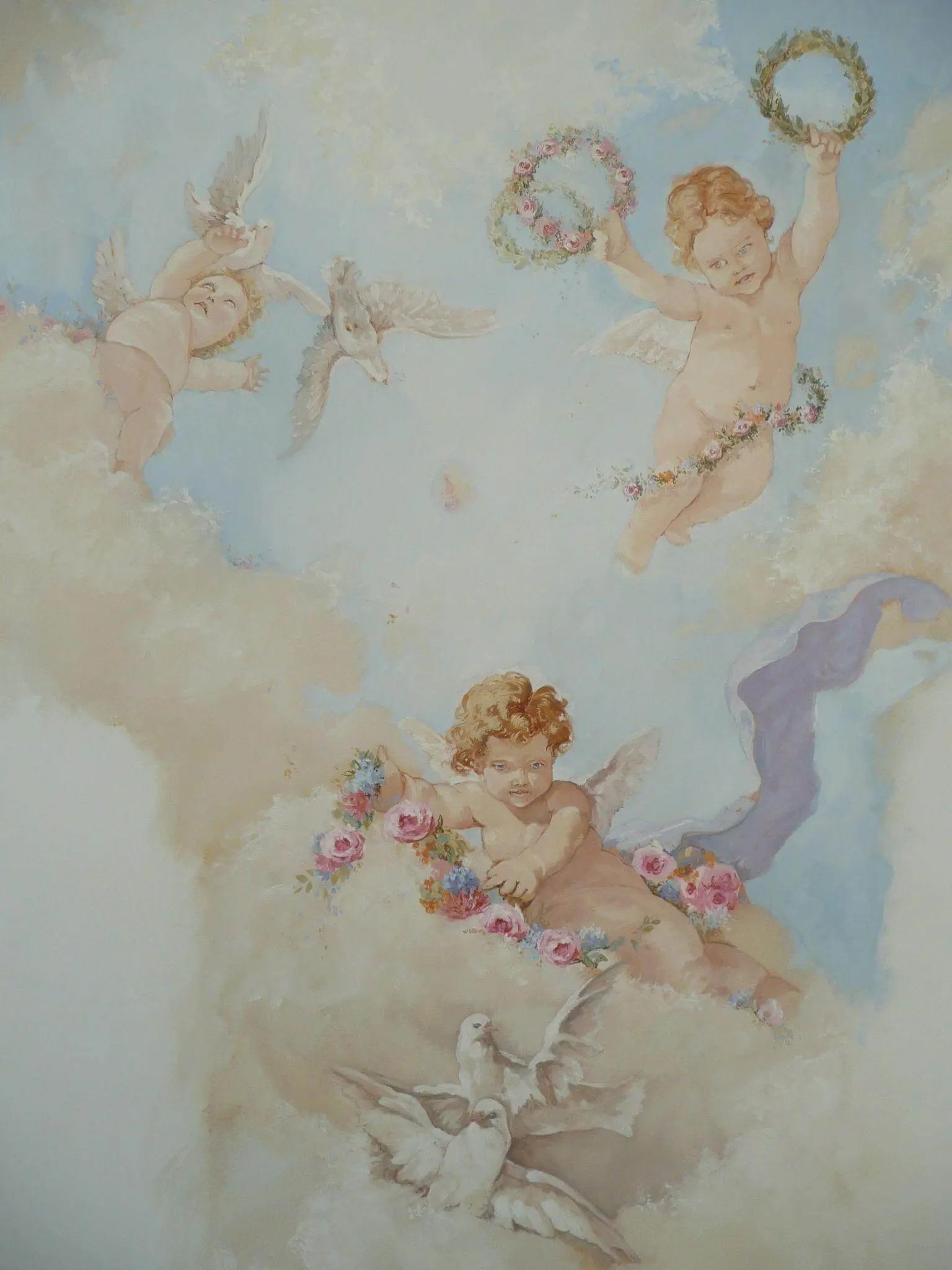 Domaines de Etangs, a unique 5-star hotel in France, is imbued with artistic soul and enchanting nature. The Atelier Arpagian created an impressive painted ceiling titled ‘The Four Seasons’ for the family lounge, as well as decorations for several suites. Always using natural pigments and drawing inspiration from the philosophy of the place, each work reflects the harmony between art and the environment, offering a unique and innovative artistic technique.”
